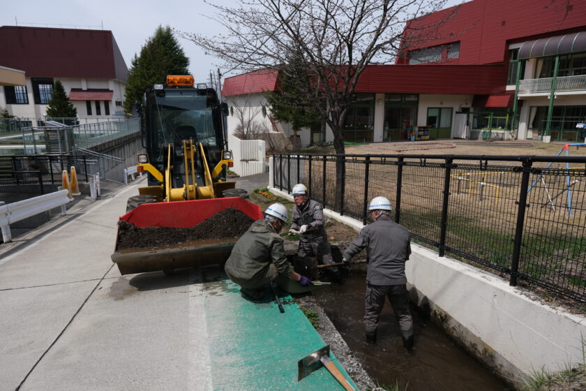 今年は、野沢温泉小学校グランドの清掃作業と、のざわこども園の園庭横にある水路の泥上げ作業を行いました。