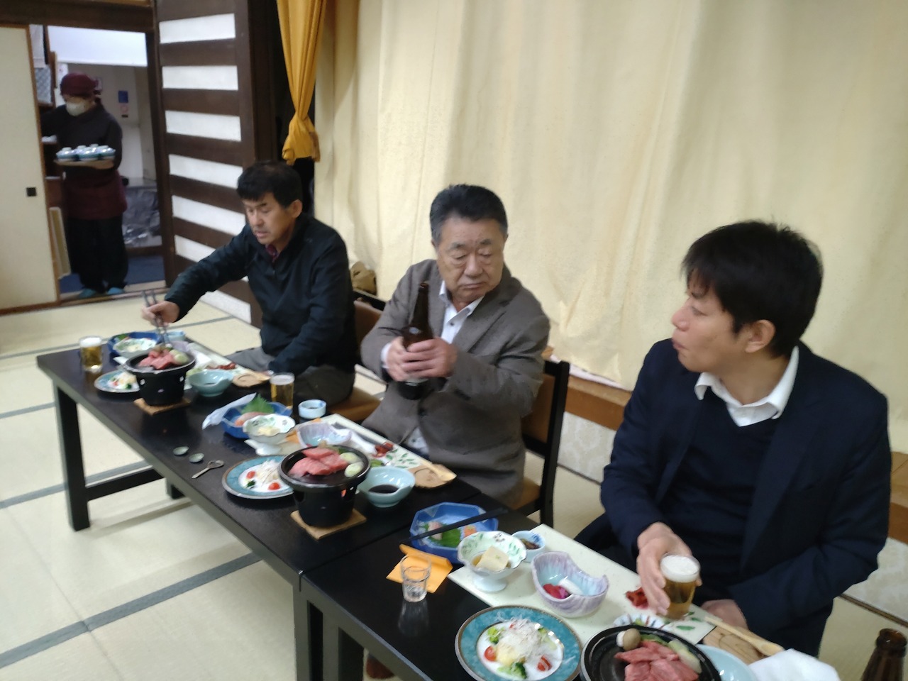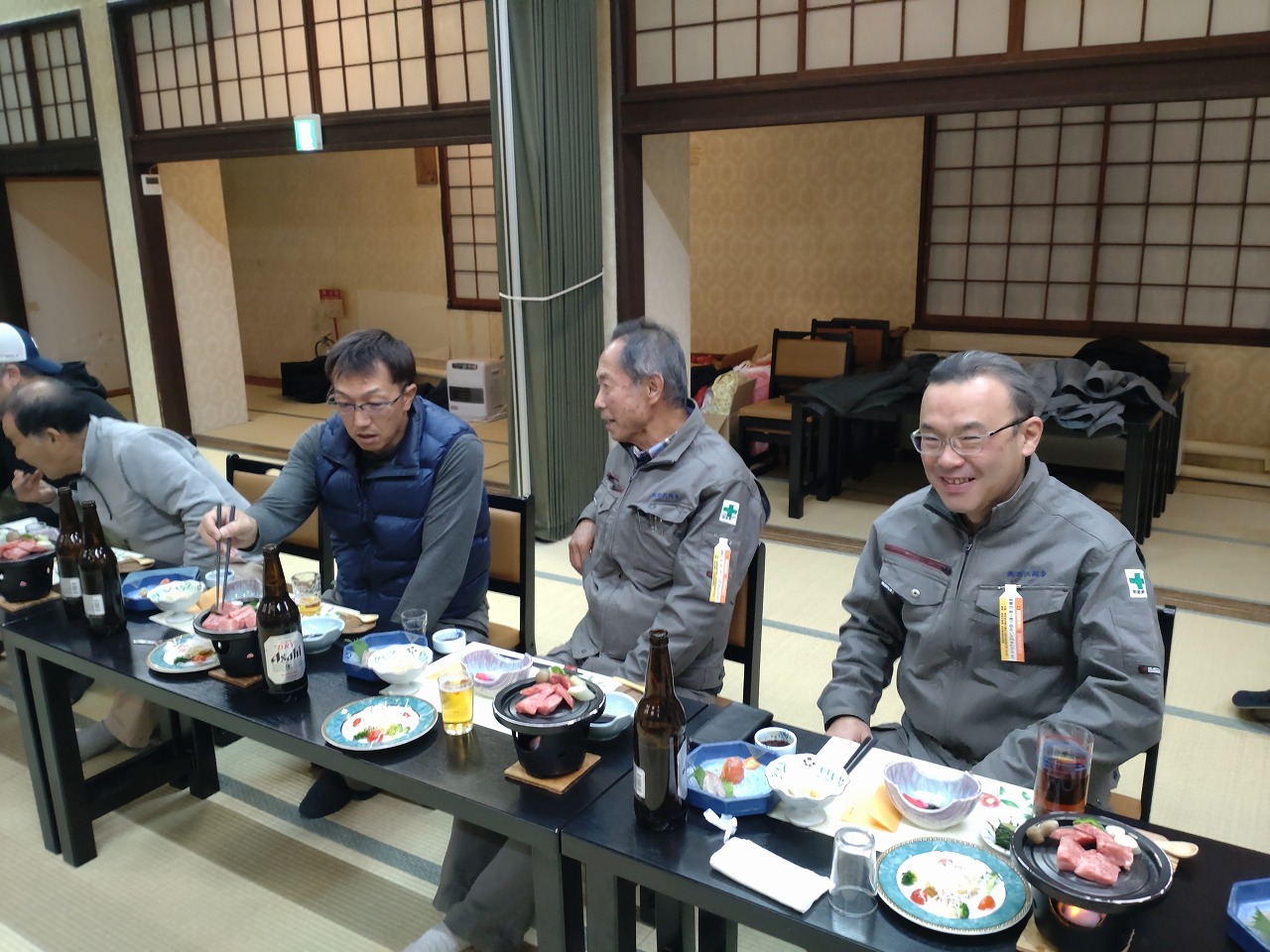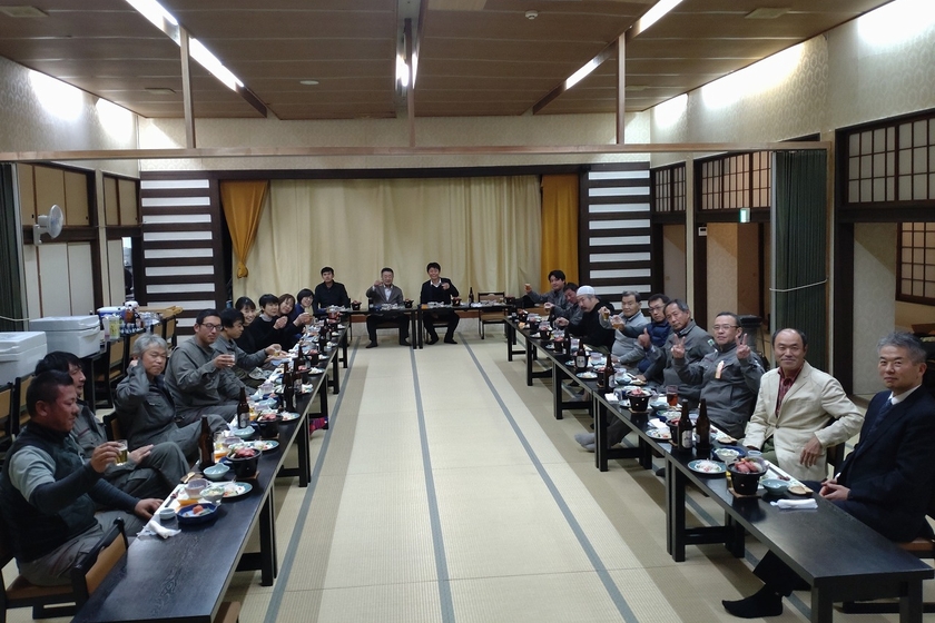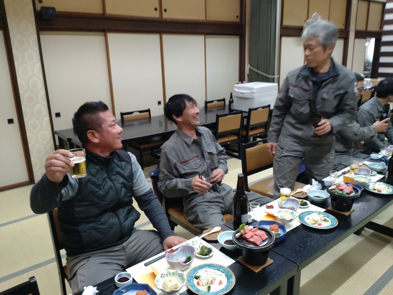 温泉上がりのビールと美味しい料理を味わいながら、一年間の労をねぎらい、社員間の親睦を深める良い機会となりました。