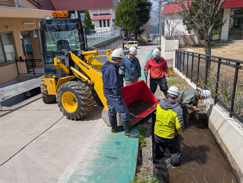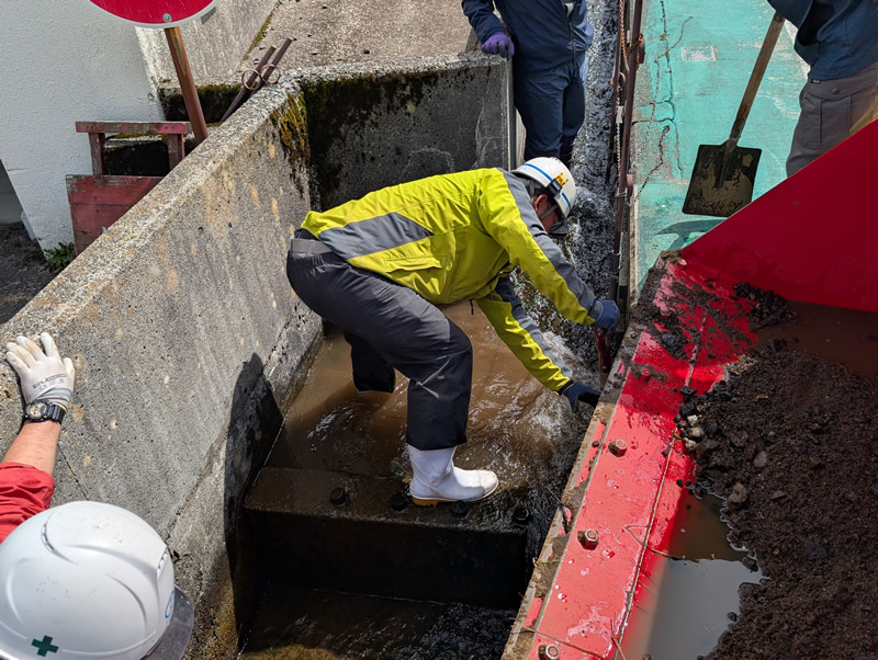 水路には昨年よりも多くの泥が堆積していました。これから訪れる梅雨や台風の時期に備え、しっかりと泥をかき出し、排水がスムーズに行える状態に整えました。